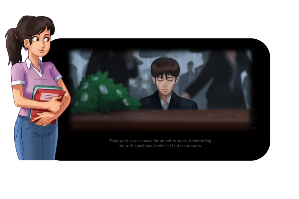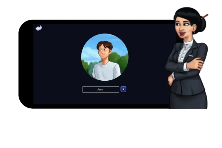 A nameless male protagonist (also known as Anon) who is forced to pay off debt of the late father to the mafia is the main character in Summertime Saga.