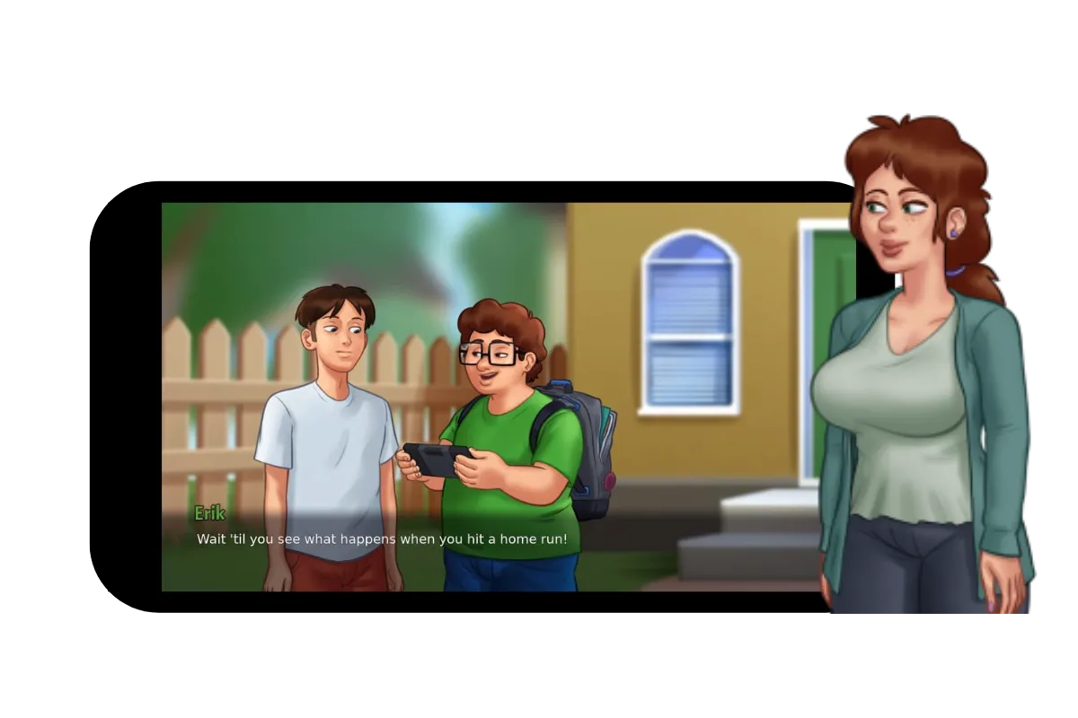Erik The protagonist is the best friend of the main character in Summertime Saga and a passionate video gamer who resides next to the main character with his landlady, Mrs. Johnson.