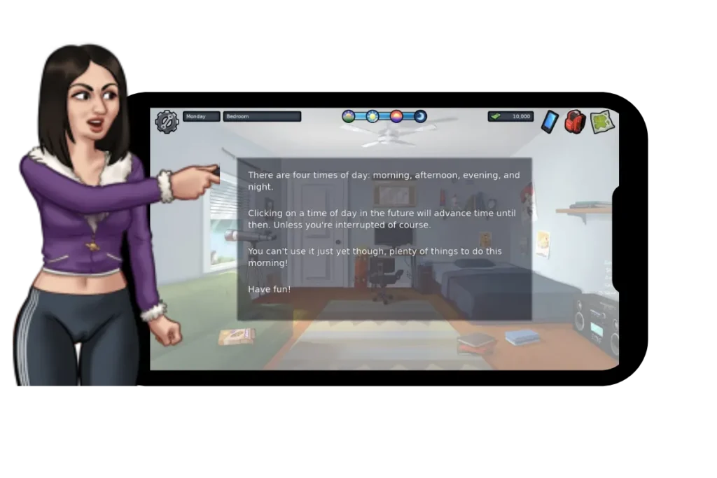 In the Summertime Saga Cookie Jar mod APK, you can interact with all 65 characters without any restrictions. That’s one of the biggest perks of the mod! Each character has multiple romance routes that you can explore across different locations and times, giving you endless ways to enjoy the game.